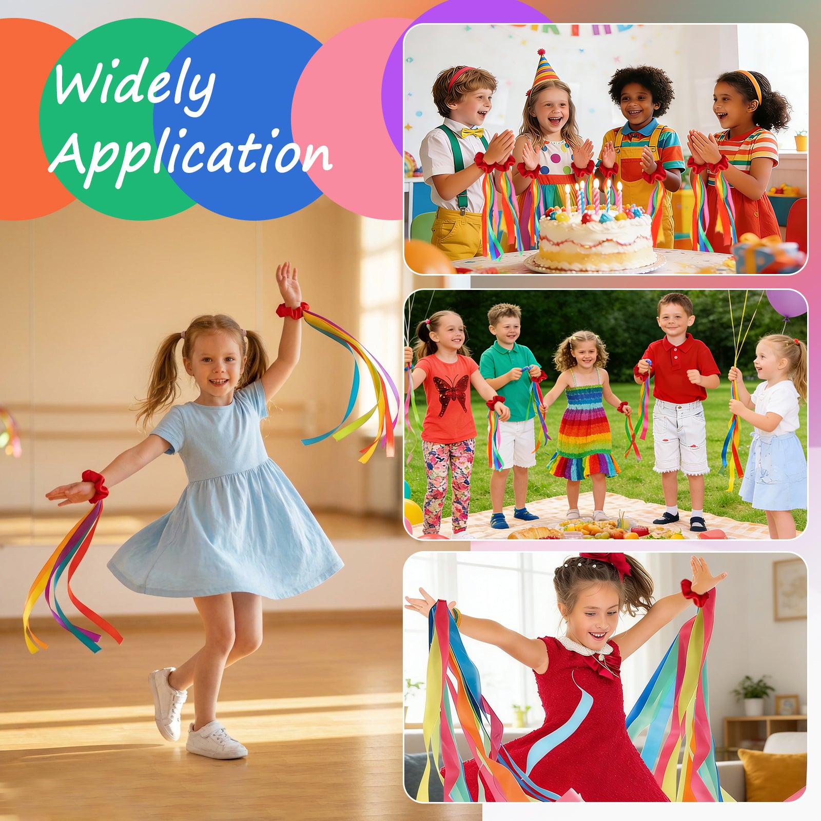 12 Pcs Rainbow Dance Ribbons for Kids, Hand Held Rhythm Gymnastics Ribbon, Rainbow Streamer Gymnastics Equipment for Kids and Adults, Ideal Dance Practice Accessories Tool & Party Decor