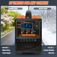 【All-Climate Use: Winter Mode & LCD Display】Built for year-round use, this battery charger has winter mode for full charging in cold weather (-4°F to 104°F), ensuring a stronger engine start. In hot weather, it prevents overcharging via auto adjustments. To keep you informed, it has an easy-to-read LCD showing real-time charge percentage, current & voltage—so you know its status.