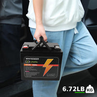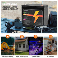 🔋【Lightweight & Easy to Move】WHITEDEEP 12.8V 30Ah LiFePO4 Battery Weighting only 6.72 lbs for one module, much lighter than lead acid batteries, may be easy to tow or move. LiFePO4 battery is 50% lighter than lead acid battery with the same capacity. The lithium battery is easy to take outdoors and place in any position that can not be achieved by lead-acid ones.