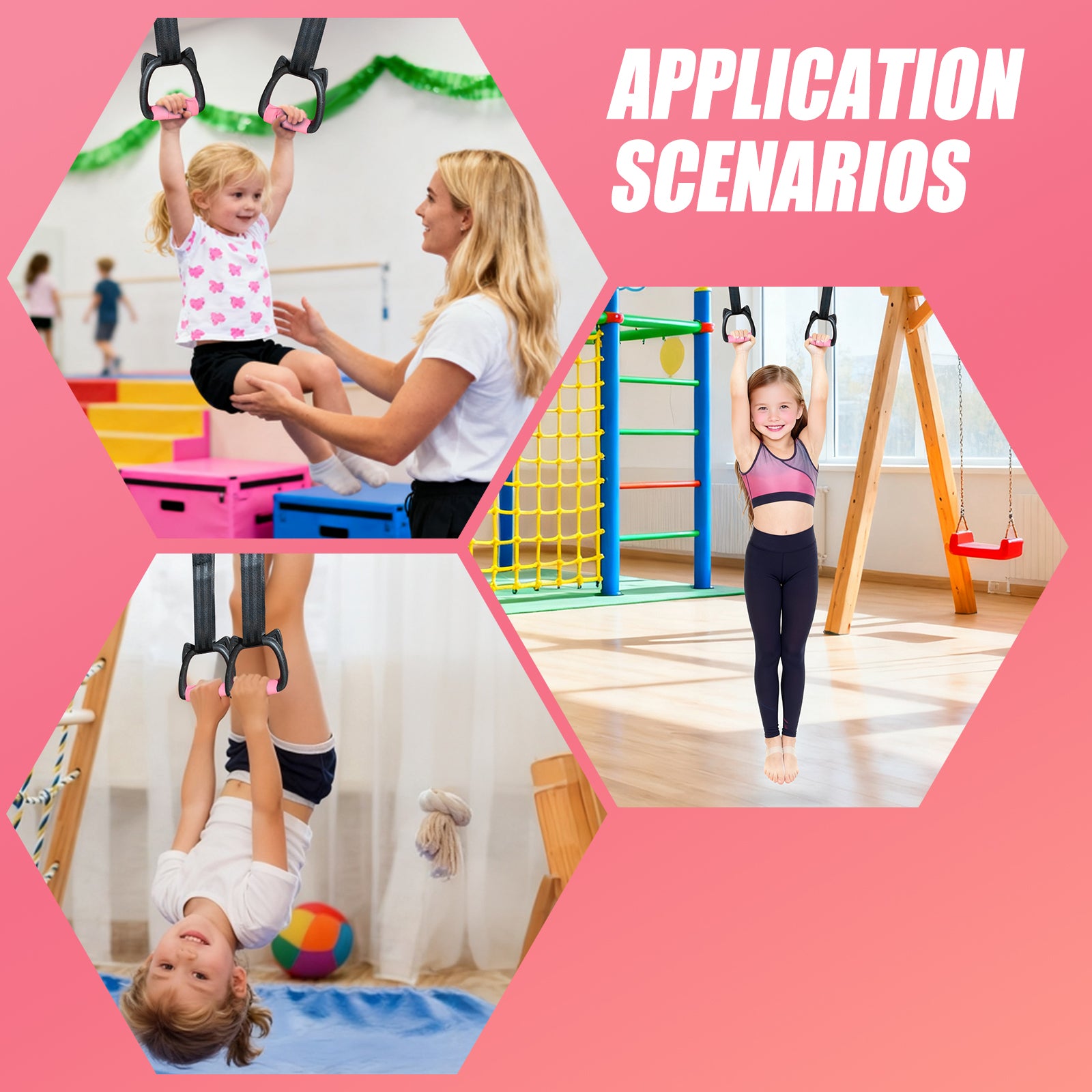 • Non-Slip Textured Grip: Features sweat-absorbent, textured ring surfaces that enhance friction, prevent slipping caused by hand sweat or moisture, and reduce hand wear to keep kids stable while pulling up, swinging, or stretching.