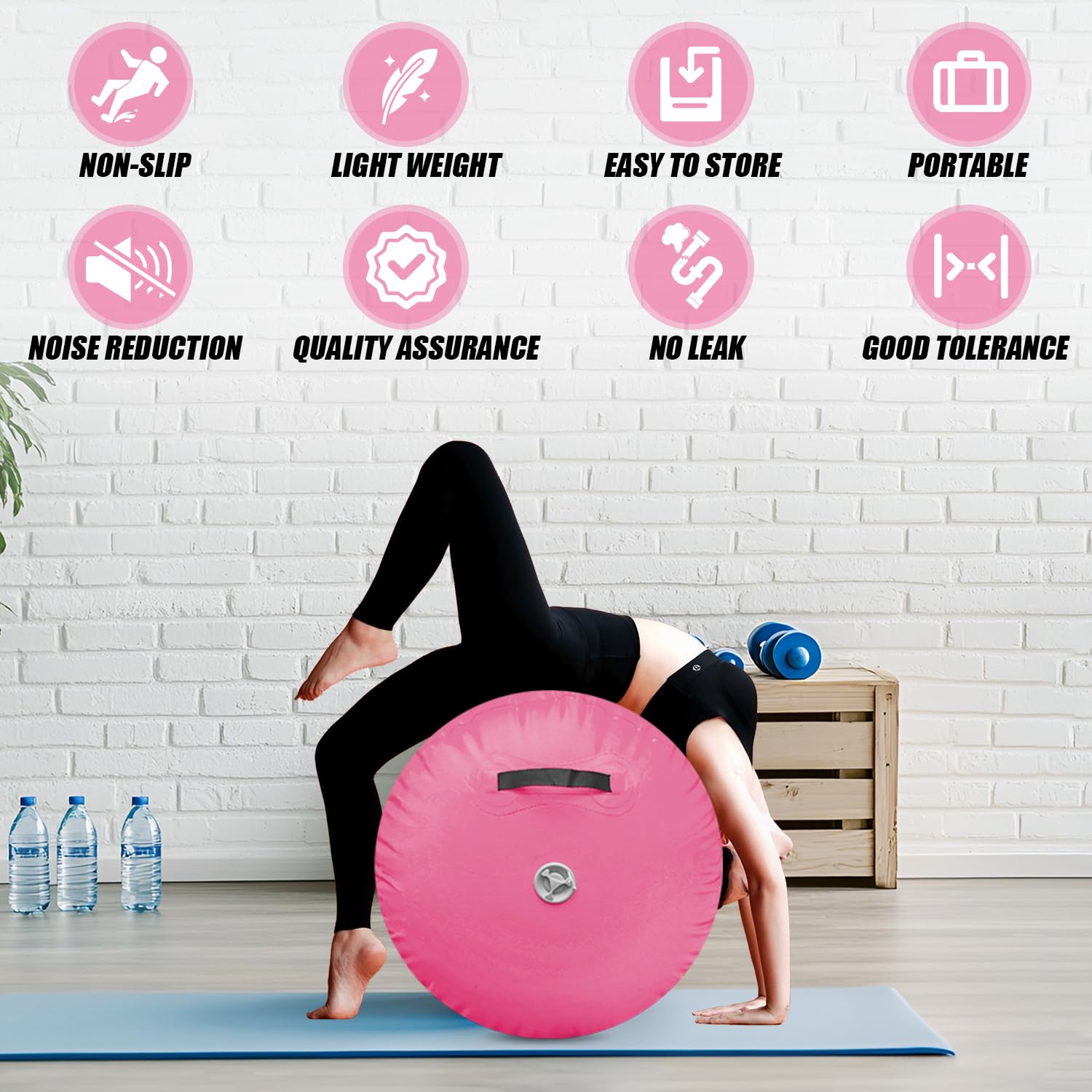 🧘EASY TO CARRY: The air roller gymnastics barrel is lightweight and in a small package, easily stored and transported. The Air roller is perfect if you are traveling from side to side or have limited space in your gym. It can be inflated or deflated less than 1 minute, making it portable and easy to take it anywhere. No worry that the mat will bring you too much pressure during the journey.