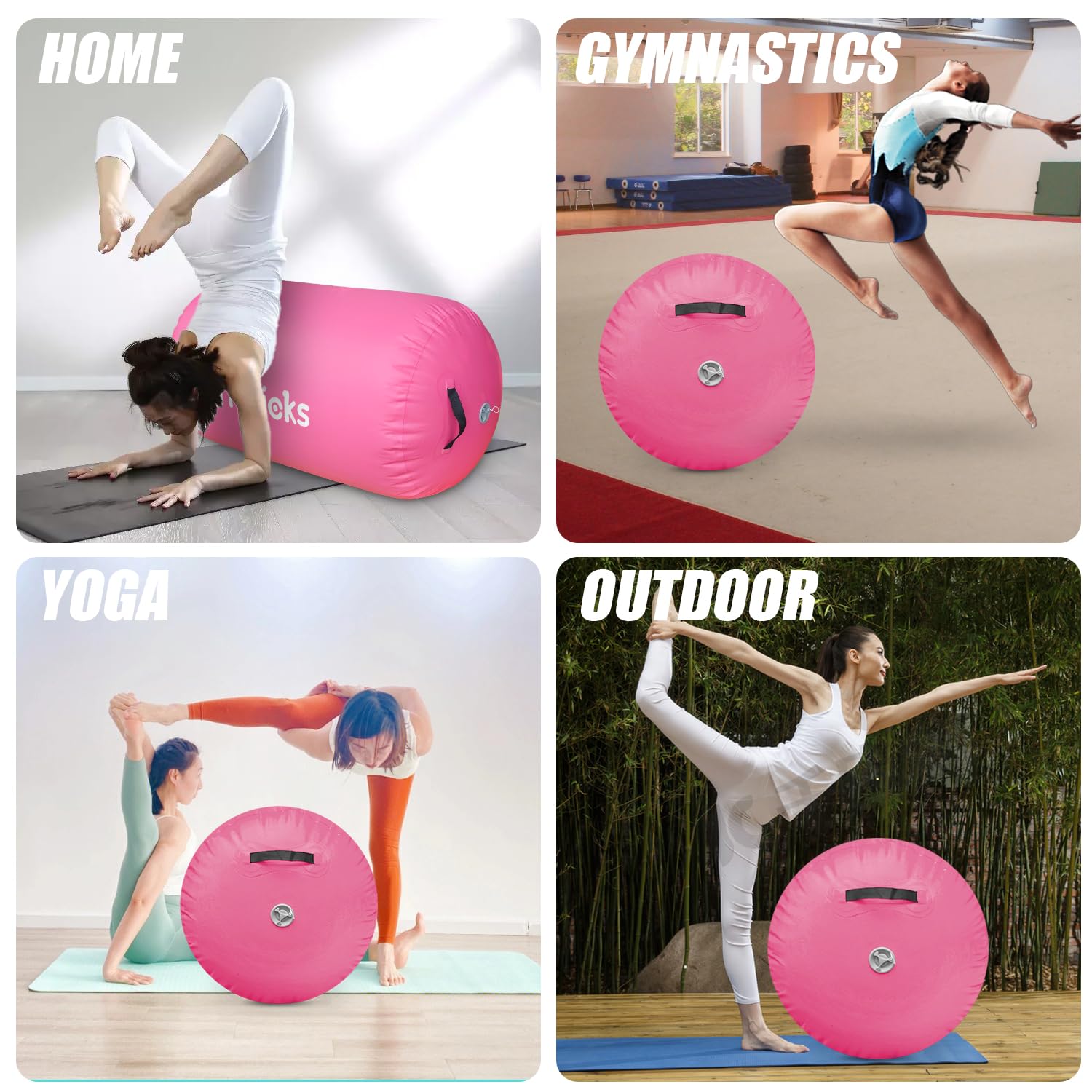 🧘WIDE APPLICATIONS: This Inflatable gymnastics barrel has many applications,such as do gymnastics, yoga, fitness, body shaping. Suitable for both indoor and outdoor sports, this air roller can be used for many occassions, such as High Performance Training, Dance Club, Gymnastics Practice, Fitness Club, Taekwondo Training, Baseball Training, Camping, etc. The air roll is a good choise for your kids, family, friend, colleague as a gift.